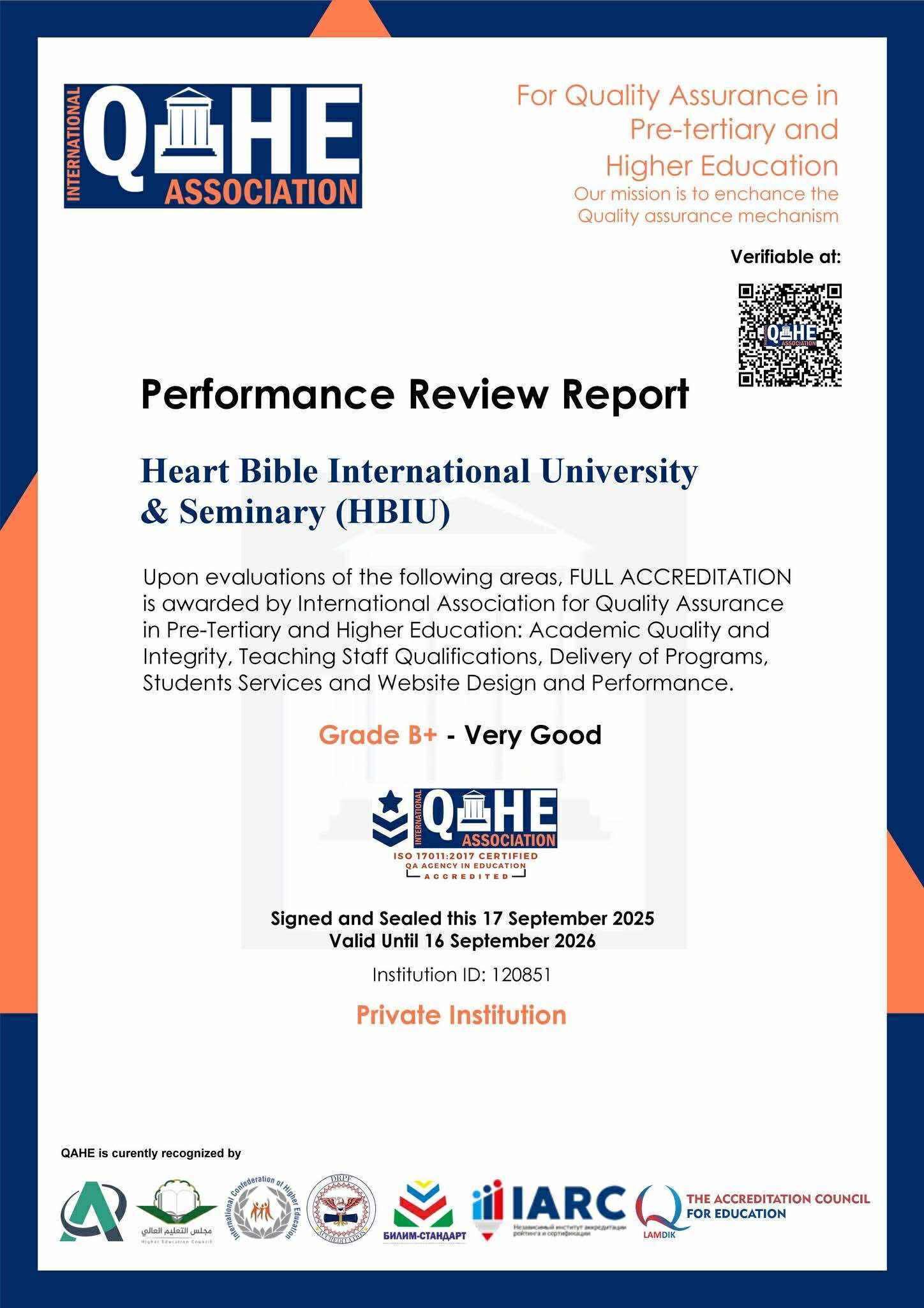 We at HBIU do believe in building levels of accountability that can help us maintain excellence in education. We have chosen to partner with FSDERS an organization that works with religious institutions that establish assessment and evaluation standards.